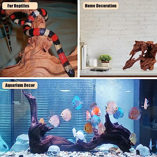 WIDELY USED — Natural drift wood is 9~14 inches or longer in length. You can place them in various aquariums fish tanks decoration, wooden boxes and glass terrariums according to your creative needs. Great for aquatic landscaping, sandpit climbing pets, such as fish, shrimp, turtles, bearded dragons, lizards, spiders, snakes, hermit crabs and more. Adds a natural, realistic view and provides them with a hiding place and more comfortable habitat.